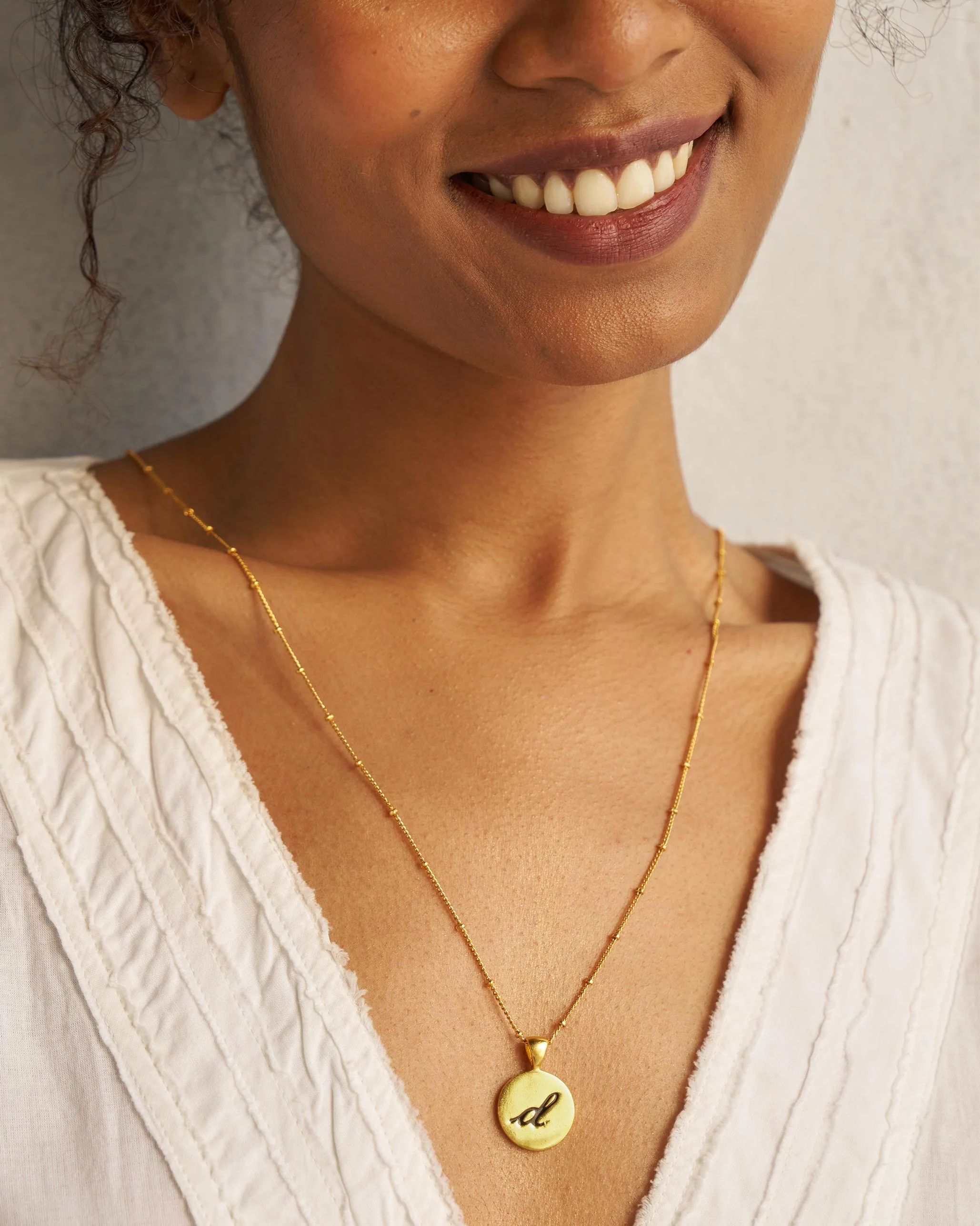 - With handwritten Devanagari akshar on one side and Roman letter on the other, this gold-plated charm with black enameling is the ideal gift for when you want to make it personal.
