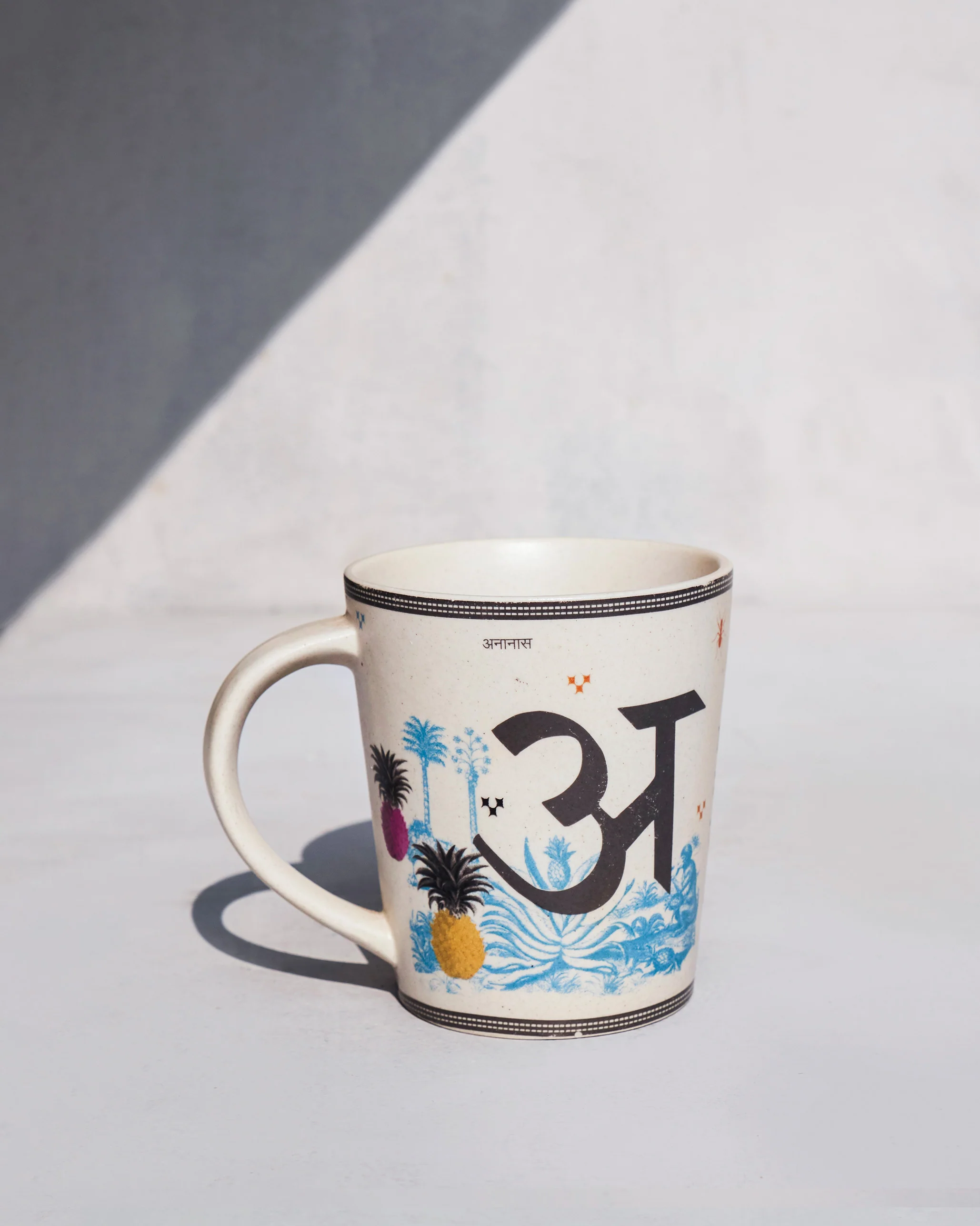 - Our much-loved alphabet mugs return; that familiar form in smooth stoneware, but with fresh designs that are a real love letter to India's regional dialect and scripts