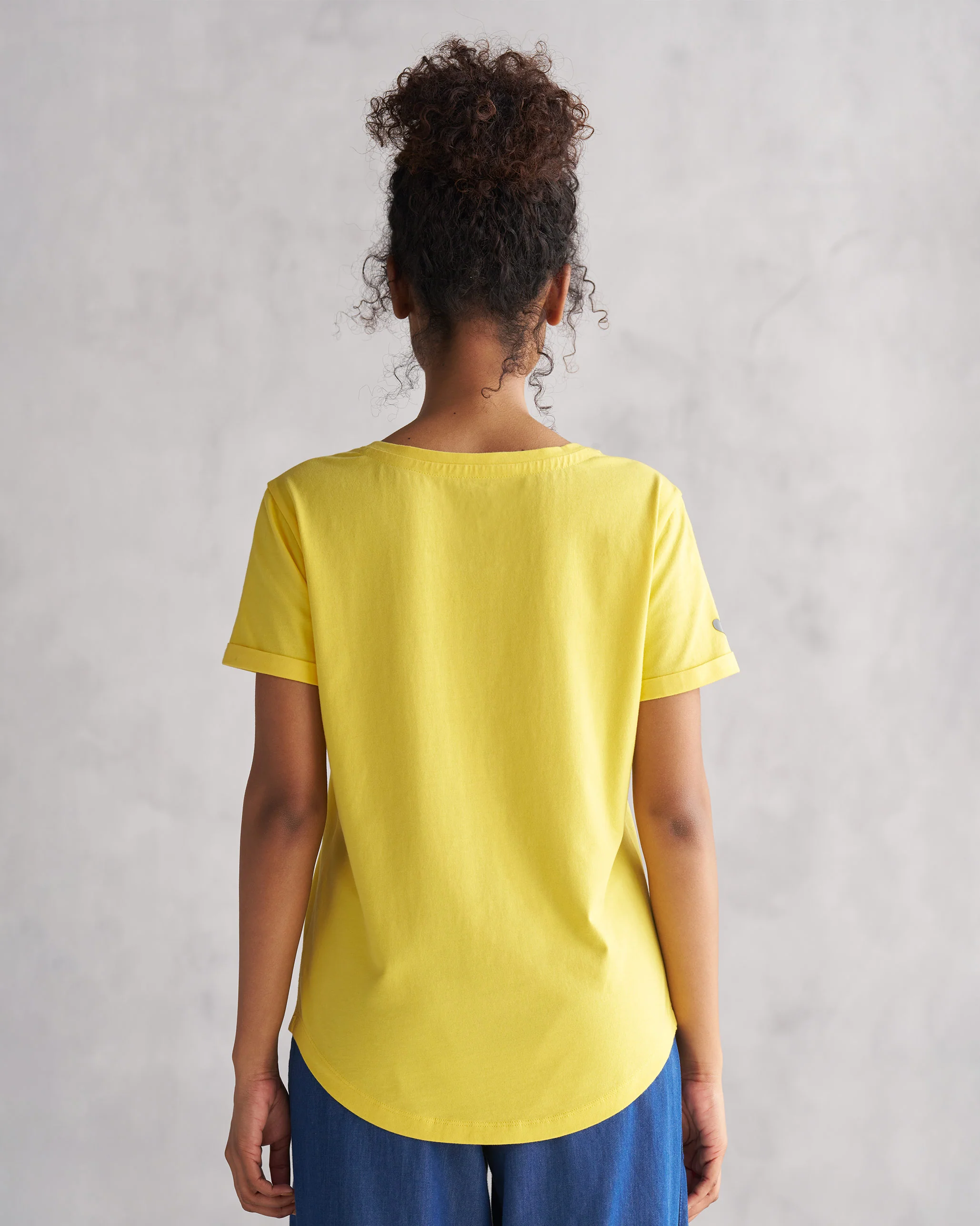 - Basics that are anything but basic; a comfortable organic cotton tee that promises to be the hardest working piece in your closet.