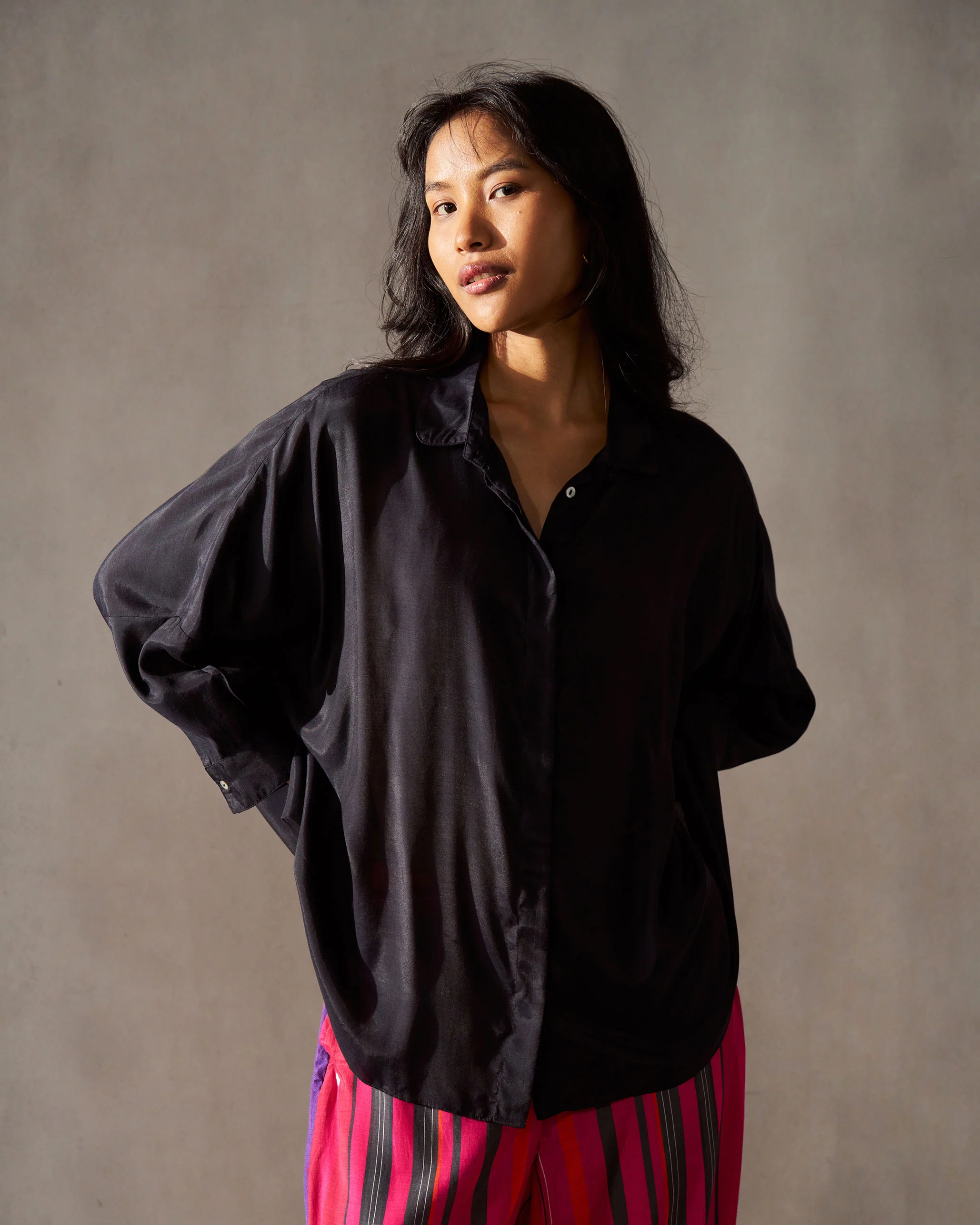 - In classic black, this boxy fit shirt with airy sleeves has got you covered day to night, season to season.