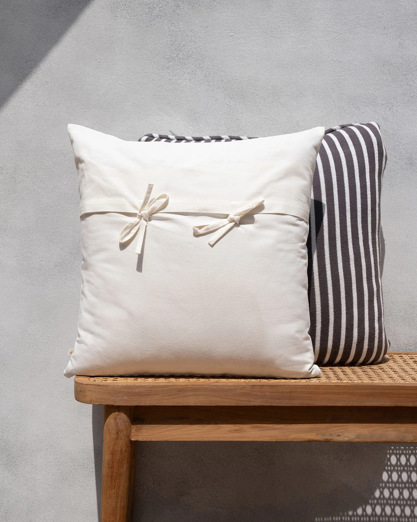 - An envelope closure with ties makes for a practical design and we pair this with a mix of silver and white cushions