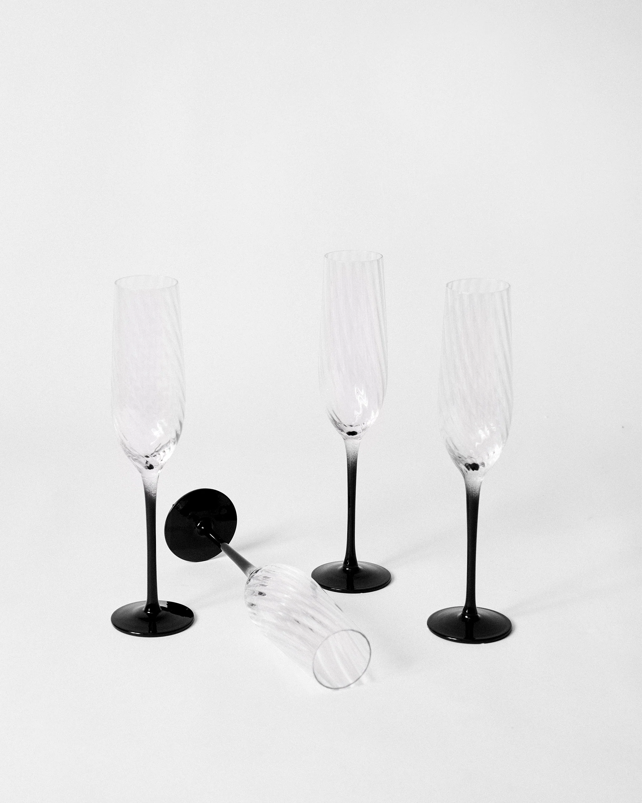 - With a monochrome appeal, the dual-toned Float Wine Glasses are elegant, slender and designed to be your go-to champagne flutes for all your celebratory moments. The charcoal black base complements the clear glass beautifully, making it stand out.