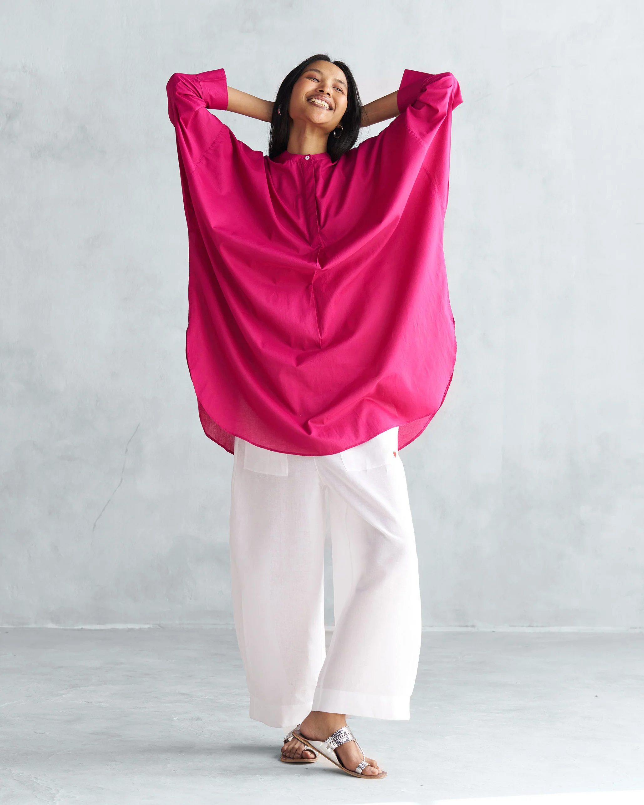 - Crafted in light and crisp organic cotton with batwing sleeves, this piece works effortlessly from the boardroom to lounging by the pool.