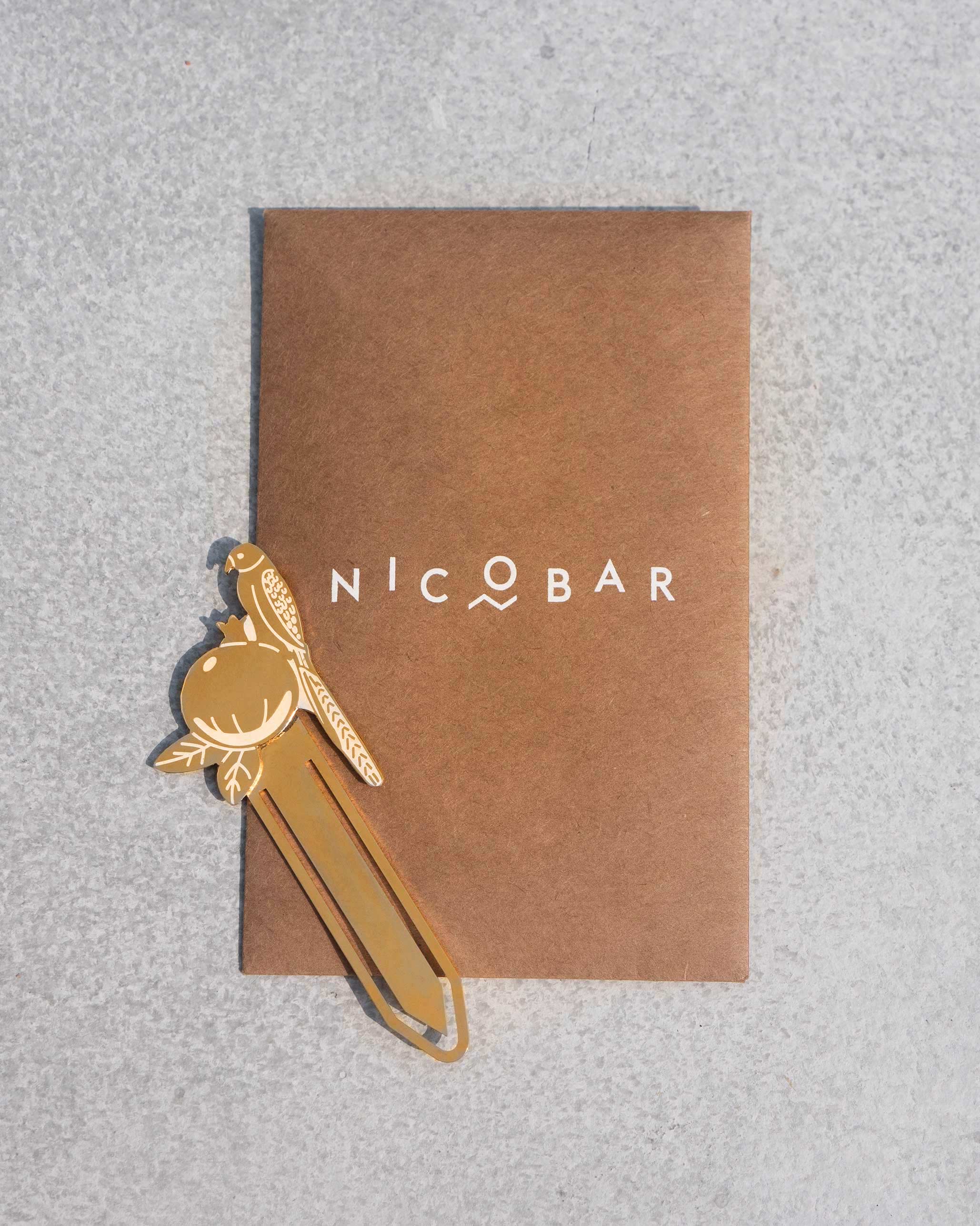 - Hold a piece of Zanzibar's vibrant spirit every time you pick up a book with the Safari Tota Bookmarks. With a perched parrot in brass atop of a pomegranate, keep track of your pages with this golden bookmark.