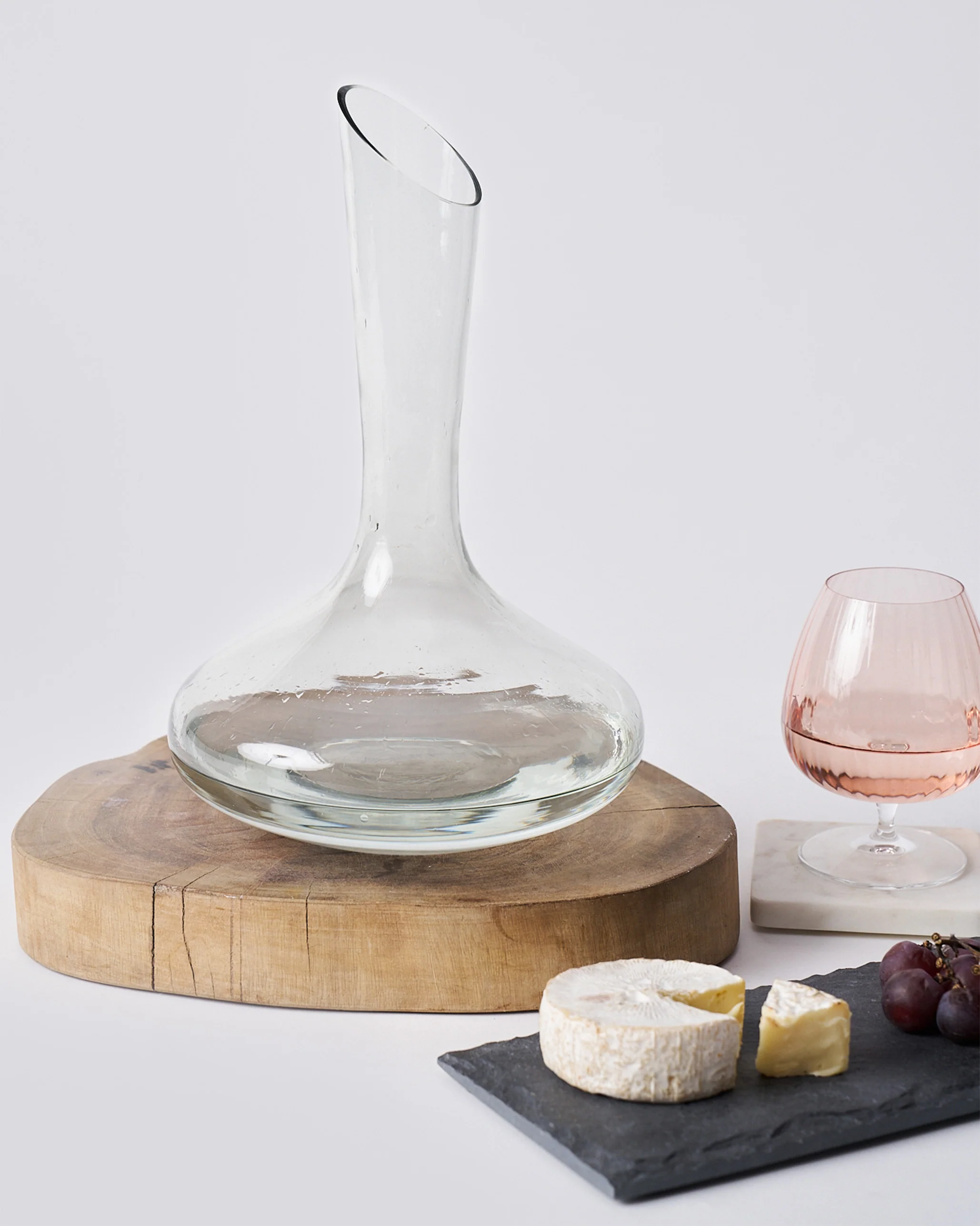 - Our wine decanter stars a beautiful curved bowl and a textured flat bottom, and is a clean, modern addition to any bar